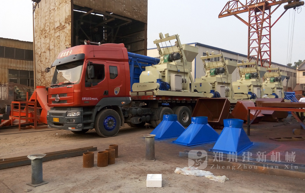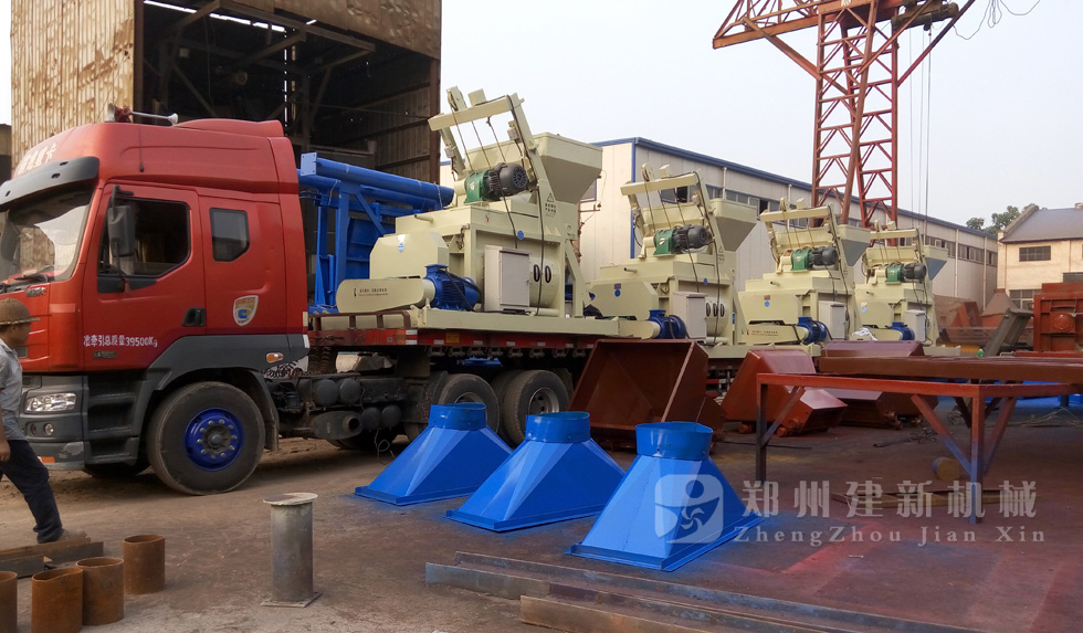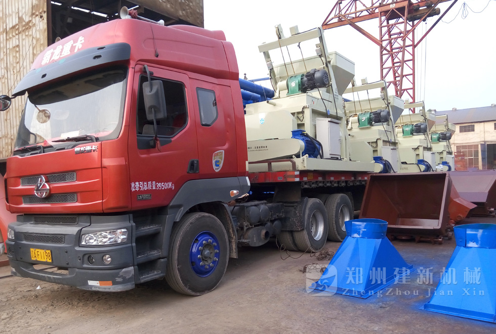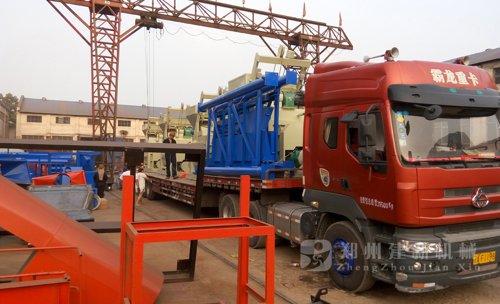 2015年7月11日下午,4臺JS1000強制式混凝土攪拌機在鄭州建新機械裝車,運往遼寧。